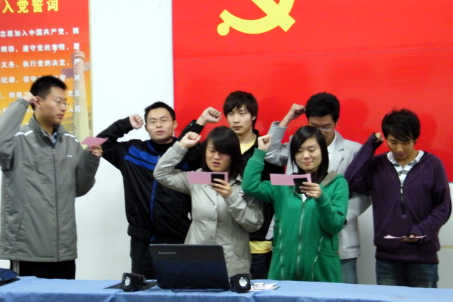 新團員在鮮艷的黨旗下接受作為一名團員的使命。組織部部長鐘飛同學宣布新團員入團儀式開始,伴隨著莊嚴的中國共青團團歌,組織部潘磊同學帶領新團員宣誓,新團員右手握拳上舉,用莊嚴地誓詞表明他們堅決擁護中國共產黨,遵守團的章程,執行團的決議,履行團員義務,嚴守團的紀律,勤奮學習,積極工作,吃苦在前,享受在后,為共產主義事業而奮斗的決心。之后,電子系團委組織部部長鐘飛同學為新團員頒發了團員證。一張張莊嚴地面孔,一雙雙真誠的雙眸,一顆顆熾熱的真心在那一刻讓我們讀懂:我堅持中國共產黨的領導,堅決服從團組織的安排,認真完成組織分配的任務,服務群眾,在奉獻中實現自我價值,在學習中實現自我提升。