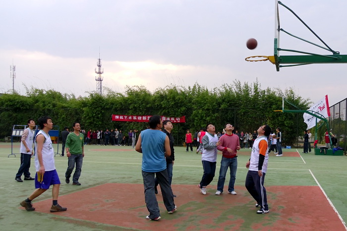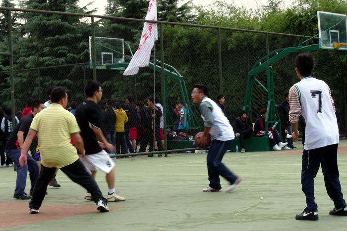 下午3點30分,隨著一聲哨響,籃球友誼賽正式開始。球場周圍也圍滿了來加油助威的老師和同學,賽場氣氛十分熱烈。美妙的上籃、精準的中投、漂亮的搶斷、迅猛的快攻、完美的過人、嚴密的防守、默契的配合,一切在籃球場上該有的元素層出不窮,一切在籃球場上該有的精神一一涌現,場面扣人心弦,令人拍手叫好。