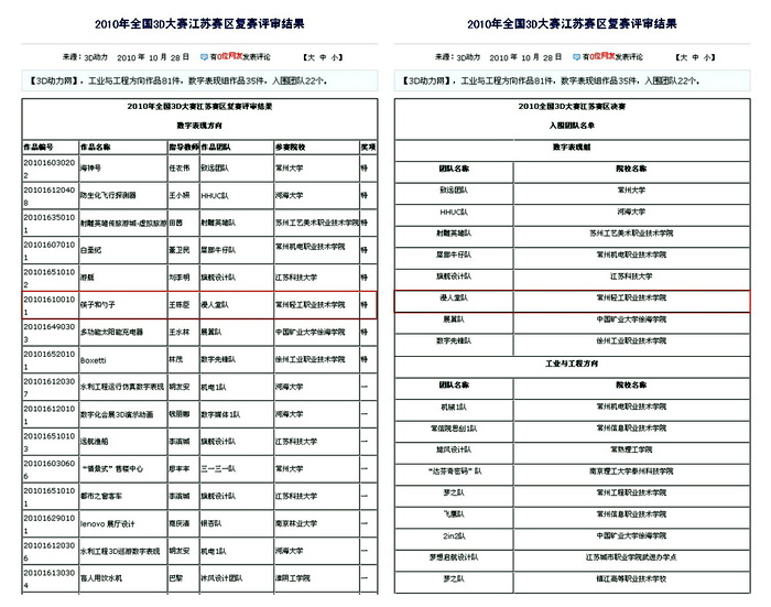 “2010全國三維數字化創新設計大賽”江蘇賽區傳來喜訊,藝術設計系