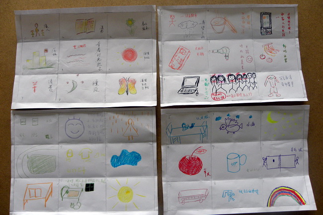 注:“九分割統(tǒng)合繪畫(huà)法”是自由聯(lián)想的繪畫(huà)技法,是日本心理學(xué)家森谷寬之在1983年春天,從佛教的金剛界曼陀羅圖典當(dāng)中得到靈感而開(kāi)發(fā)的繪畫(huà)法。
