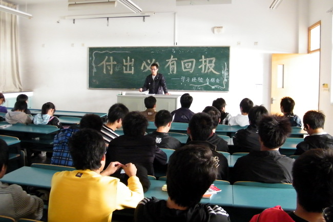 “書(shū)山有路勤為徑,學(xué)海無(wú)涯苦作舟。”為使10級(jí)新生盡快融入大學(xué)生活,端正學(xué)習(xí)態(tài)度,明確學(xué)習(xí)目標(biāo),提高學(xué)習(xí)熱情,掌握正確的學(xué)習(xí)方法和技巧,經(jīng)過(guò)精心的策劃和準(zhǔn)備,電子系于11月10下午召開(kāi)了主題為“付出必有回報(bào)”的學(xué)習(xí)經(jīng)驗(yàn)交流會(huì)。