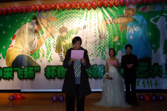 經(jīng)過層層選拔,有14人進(jìn)入決賽。比賽過程中,選手們深情的演唱,優(yōu)雅的樂器演奏,精妙絕倫的舞蹈表演等一系列精心準(zhǔn)備的節(jié)目將比賽一次次地推向高潮。藝術(shù)團(tuán)的友情演出給同學(xué)們帶來了陣陣歡笑。現(xiàn)場(chǎng)觀眾熱情高漲,氣氛熱烈。晚會(huì)評(píng)出了一、二、三等獎(jiǎng)及優(yōu)秀獎(jiǎng),一位歌唱《西界》的模具試點(diǎn)班的杜仁宇一舉奪魁。最終晚會(huì)在一首情義濃厚的《朋友》中落下帷幕。