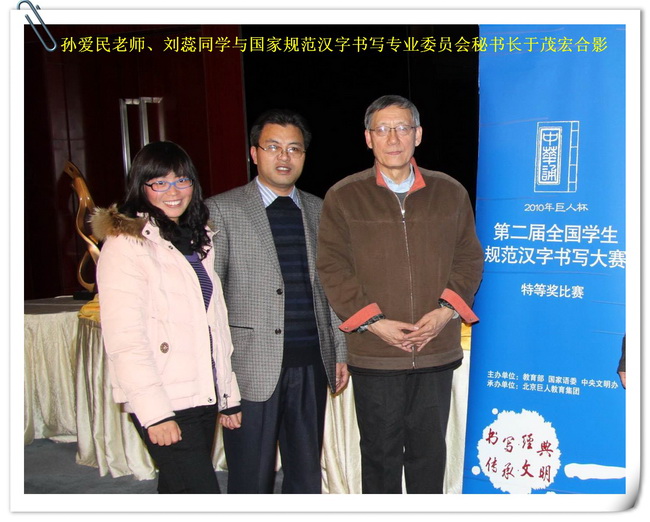 孫愛劉蕊與教育部規(guī)范漢字書寫專業(yè)委員會秘書長于茂宏合影