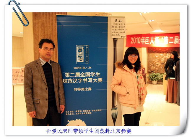 本次大賽設(shè)小學(xué)一組、小學(xué)二組、初中組、高中組、中職組、高校組、港澳臺僑組、留學(xué)生組,共八個組別,分軟筆、硬筆兩大系列。我院藝術(shù)系09廣告631班劉蕊同學(xué)代表江蘇高校赴北京參賽,在