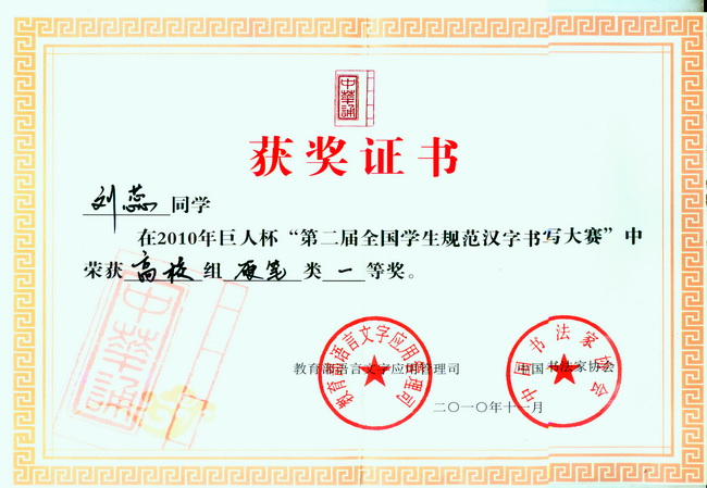 在座談會上,孫愛民老師介紹了本次大賽的具體情況以及輔導學生參加競賽的整個過程。此次全國學生規(guī)范漢字書寫大賽自2010年5月啟動以來,全國共有938萬余名學生參賽,被上海大世界吉尼斯總部認證為“規(guī)模最大的規(guī)范漢字書寫大賽”,其中不乏很多書法專業(yè)選手,但劉蕊同學沉著冷靜,認真準備,在眾多選手中取得了書法技藝排名第七,綜合素質排名第十并榮獲高校組一等獎的好成績,這也是江蘇高職院校唯一的“一等獎”。