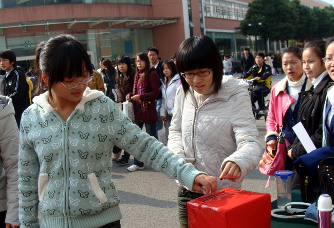 在募捐過程中,全院師生都表現(xiàn)出了“一方有難,八方支援”,“人間有真愛,處處有真情”的愛心精神。在食堂門口,過往的同學(xué)都紛紛停足,了解石榮慧同學(xué)的具體情況,熟悉她的人還問起她的現(xiàn)狀,在得知她無錢醫(yī)治,如今還臥病在床時,很多同學(xué)紛紛解囊,并在心愿墻上寫上自己的祝福;在圖文樓908,旅游系高振發(fā)書記帶頭捐款,全系教師都積極響應(yīng);我院黨委張濤副書記也十分關(guān)心學(xué)生,了解了她的最近病況之后,不但批復(fù)愛心基金資助,自己還當(dāng)場捐款,表達(dá)了對患病同學(xué)的關(guān)心和幫助;還有院保安支隊組織捐出1000元,院學(xué)生會組織各公寓門口募捐,藝術(shù)系自由風(fēng)單車協(xié)會組織義賣,院宣傳部廣播和宣傳等等。在過去的幾天,常州輕院彰顯了“愛的奉獻(xiàn)”精神,愛心、奉獻(xiàn)是我院寶貴的精神財富。