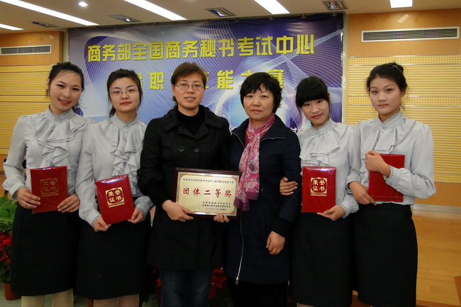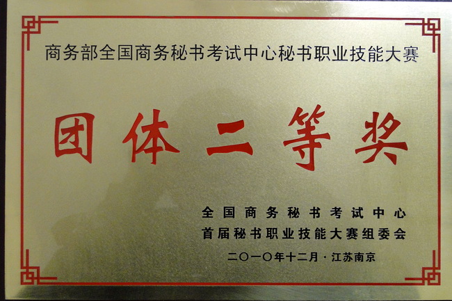 為進一步深化高職教育教學改革,全面提高秘書從業(yè)人員的職業(yè)素質(zhì)和技能水平,加快秘書人才的培養(yǎng)和選拔,積極推進高等院校秘書專業(yè)建設(shè)和人才培養(yǎng)模式的改革與發(fā)展,推進秘書職業(yè)化和準入機制發(fā)展進程,展示高職院校秘書專業(yè)學生積極向上、奮發(fā)進取的精神風采和熟練的職業(yè)技能,由商務(wù)部全國商務(wù)秘書考試中心與中國人民大學出版社主辦、南京城市職業(yè)學院承辦的“首屆秘書(商務(wù))職業(yè)技能大賽”于2010年12月4-5號在南京舉行。我院在此次比賽中獲得團體二等獎的好成績,支艷同學獲得個人總成績一等獎,何茜茜、崔文琴同學獲得個人總成績二等獎,宗紅香同學獲得個人總成績?nèi)泉劇M瑫r,宗紅香同學還獲得書法比賽三等獎。