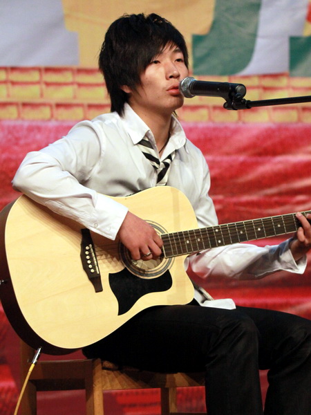 絢麗的舞臺雖伴有輕快的歌曲,但仍彌漫著硝煙的氣味,決賽的緊張氣氛并不因此而減弱。從復賽的眾多選手中脫穎而出的16位選手有了以往參加比賽的經驗,他們顯得更加從容,更加自信。一幕幕經典的銀幕形象通過選手們開場的演繹顯得形象而又生動。一曲《青春紀念冊》吟唱難忘的歲月,凝聚心頭不變的情節(jié)。一首首動聽的歌曲回蕩在報告廳中,同學們的喝彩聲此起彼伏,晚會更是高潮迭起。此次大賽的選手們不僅能說會唱,更是能演會跳,趙杰的《快樂崇拜》用簡單明快的舞蹈帶動著全場的氛圍;一首《青藏高原》讓李星星先聲奪人,蕩氣回腸;柏群忠自彈自唱的原創(chuàng)歌曲《二十年征途》,才藝雙馨,清新脫俗;呂超的《江南》、徐紹燕的《聽海》更是深情款款,讓人投入其中難以忘懷;吶喊助威聲不時的從選手們的粉絲團中傳來,現(xiàn)場氣氛十分活躍,而在絢爛的舞臺上選手們繼續(xù)綻放屬于他們的光彩,朱車成的一曲《新貴妃醉酒》更是把現(xiàn)場的氛圍推向了最高潮……