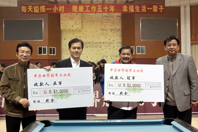 為期三天的百興-華府杯世界冠軍10號(hào)球爭(zhēng)霸賽趙豐邦VS雷耶斯的馬拉松式比賽于上周在我院終于全部結(jié)束,有著“魔術(shù)師”之稱(chēng)的菲律賓世界撞球大師艾夫倫-雷耶斯技高一籌,與臺(tái)灣“冷門(mén)殺手”趙豐邦戮戰(zhàn)104局后,60-44以16局的絕對(duì)領(lǐng)先優(yōu)勢(shì)戰(zhàn)勝趙豐邦,獲得冠軍,并且收獲了20000美金的冠軍獎(jiǎng)金。