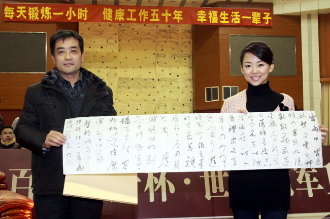 副院長(zhǎng)楊勁松給中國(guó)“九球天后”潘曉婷贈(zèng)送禮物