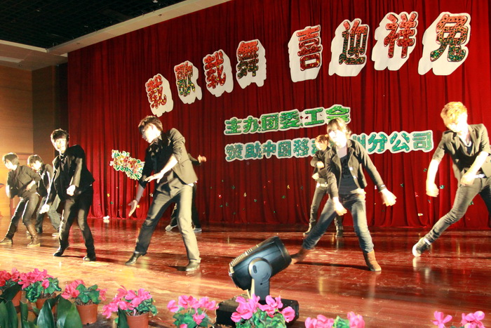 隨后,精彩的節目帶著新年的第一聲祝福為大家送去了一個又一個驚喜。信息系選送的舞蹈《歌舞青春》改編自百老匯經典歌舞劇,完美展現了當代大學生的青春風采與無限活力;電子系韓楊老師與院十佳歌手徐紹燕同學帶來的歌曲《祈禱》溫馨浪漫,娓娓動聽;大學生藝術團表演的《土家風情》、院工會帶來的苗族舞《擺啊擺》和機械系選送的蒙古族舞《草原騎兵》整合成了一出民族舞大聯歡,曼妙的舞步,輕盈的身姿,淋漓精致地展現出了少數民族的文化特色,為全場觀眾帶來了一場豐富的視覺盛宴;由藝術系周益老師指導的onlydance社團選送的爵士舞再一次引爆了全場,尖叫聲、喝彩聲連連;基礎部李立新老師表演的詩朗誦《相信未來》則強有力地表達出了每一位輕院人踐行“建軍精神”的豪情壯志,幾度被全場師生熱烈的掌聲所打斷,也將這次盛會推向了高潮;由輕化系李劉麗老師和信息系柏鐵山老師分別領銜的歌伴舞《青花瓷》和《童年》引燃了觀眾們的激情;大學生藝術團選送的笛子伴舞《神話》,電子系選送的歌曲《最炫民族風》和舞蹈《茉莉幽香》,旅游系選送的《美麗的地方》也贏得了全場師生的一致好評。