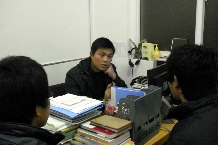 面試分三組進行。圍繞著“勤工儉學的目的”,“如何出色完成工作”,“如何有效地與人溝通”,“如何對待職業(yè)倦怠”等焦點問題,應聘同學都給出了不同的見地和看法,招聘進行地如火如荼。