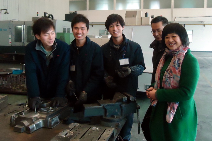 首先,李主管向我們詳細介紹了我系10設(shè)計試點班23個學(xué)生的情況:企業(yè)領(lǐng)導(dǎo)、員工對我系學(xué)生的表現(xiàn)很滿意,對我系專門配備協(xié)助管理的班主任袁飛老師的工作表示肯定。經(jīng)過10天的一線工作,我系23名學(xué)生表現(xiàn)優(yōu)異,多次獲得領(lǐng)導(dǎo)表揚。企業(yè)對工學(xué)結(jié)合的這些學(xué)生在生活等方面十分關(guān)心,專門安排到新宿舍大樓。隨后,李主管陪同我們?nèi)艘黄鸬絾胃讬C、多缸機等事業(yè)部看望在一線工作的學(xué)生,張燏副書記在了解學(xué)生在工學(xué)結(jié)合期間的問題的同時,也不忘教育學(xué)生要珍惜機會,認真工作,好好向師傅學(xué)習(xí)請教。最后,李主管陪同我們?nèi)艘黄鹋c學(xué)生在江蘇常發(fā)農(nóng)業(yè)裝備股份有限公司的食堂吃工作餐,與學(xué)生做進一步的溝通,勉勵學(xué)生一定要踏踏實實、勤勤懇懇,完成系部安排的工學(xué)交替實踐環(huán)節(jié)。