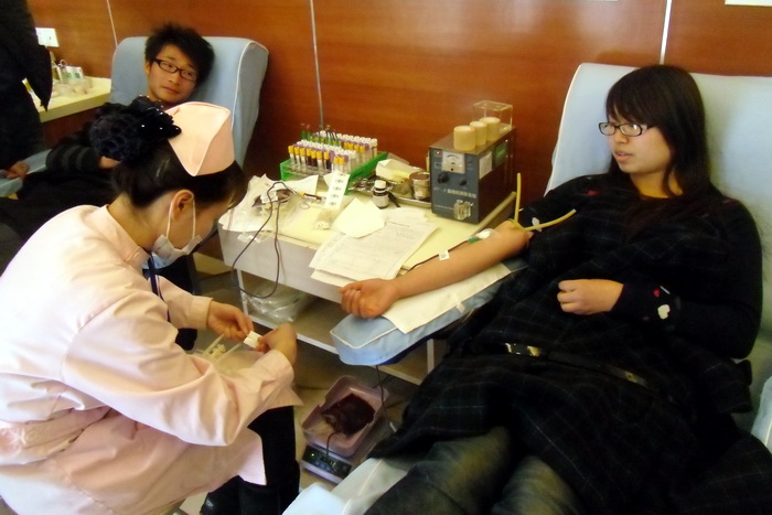 在兩個小時的獻血過程中,愛心在鮮紅的血液汩汩地流入采血袋中傳遞著,奉獻愛心、幫助他人的愿望,一股股青春的熱血,一顆顆愛心的關懷籠罩著整個活動現場,每個獻血者的心中只有獻血的光榮與自豪。