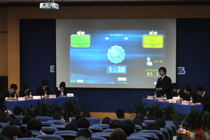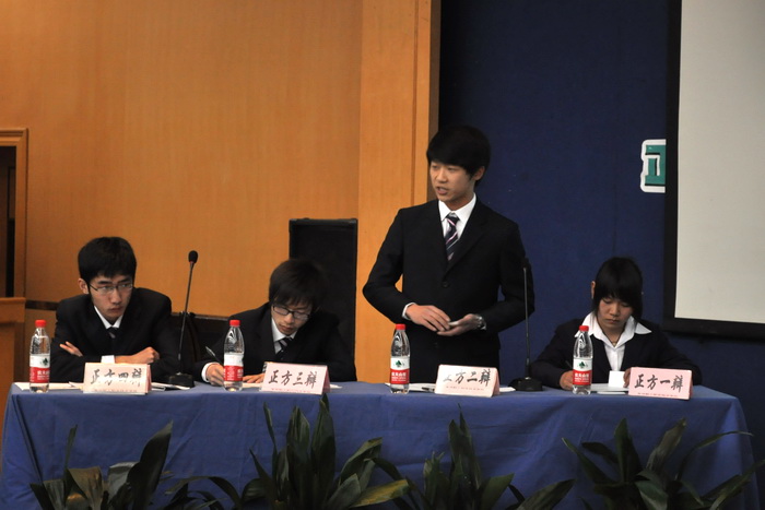 來自各系共八支代表隊(duì)參加了我院2011年“建軍杯”辯論賽,他們積極參與,充分準(zhǔn)備,為我們奉獻(xiàn)了一場又一場精彩絕倫的比賽??倹Q賽上,電子系代表隊(duì)和模具系代表隊(duì)圍繞“學(xué)歷還是能力讓大學(xué)生更利于就業(yè)”這一辯題展開辯論。在歷時一個多小時的激辯交鋒中,雙方辯手都圍繞著本方觀點(diǎn),拿出古今中外的典型例子,在申明自己立場的同時,也頻頻發(fā)問把對方的觀點(diǎn)推倒。這場唇槍舌戰(zhàn)自然贏得了臺下觀眾陣陣熱烈的掌聲。