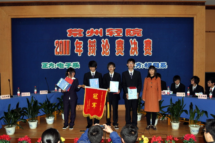 辯論是智慧的較量,是語言的藝術(shù),是思想進(jìn)步的階梯。近年來,我院堅(jiān)持不懈地通過“建軍杯”辯論賽這一比賽形式,營造了濃厚的辯論氛圍,提高了學(xué)生的思辨能力和綜合素質(zhì),并成功組建了輕院辯論隊(duì)。在去年舉行的常州市大學(xué)生辯論賽中,包括我院在內(nèi)的14所在常高校、高職院、高職校報名參加。我院辯論隊(duì)經(jīng)過歷時一個多月的精心準(zhǔn)備和三場比賽激烈角逐,最終榮獲季軍。