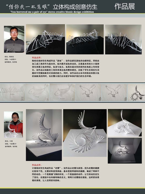 藝術設計系借遷入新教學場所的契機,因地制宜著力打造藝術設計系特有的教學環境氛圍,舉辦了2014年度課程交流作品系列展。本次課程交流系列展覽前后持續了40天,涉及和涵蓋了藝術設計系3個教研室7個專業方向的18個班級。該系列展覽整合了文化創意設計專業群多門平臺基礎課和專業方向課,既有一門課程的平行班的橫向對比,也有同一專業的縱向承接,集中展示了藝術設計系各門課程教學改革所取得的階段性成果,也反映藝術設計系學子孜孜以求、銳意創新的學習狀態。