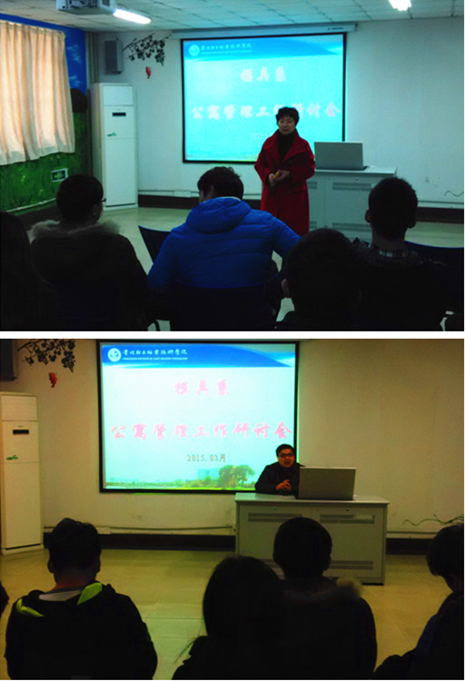 后勤集團(tuán)劉蘭芳主任針對公寓管理員遇到的宿舍管理問題在交流中和與會的宿舍長、學(xué)生干部進(jìn)行交流。經(jīng)過交流,大家也總結(jié)了以往公寓文化建設(shè)的經(jīng)驗(yàn)及不足,特別是在關(guān)于宿舍學(xué)風(fēng)營造與建設(shè)的功能如何得到應(yīng)有發(fā)揮,部分宿舍布置逐漸偏離了文化宿舍建設(shè)的主題上達(dá)到共識。