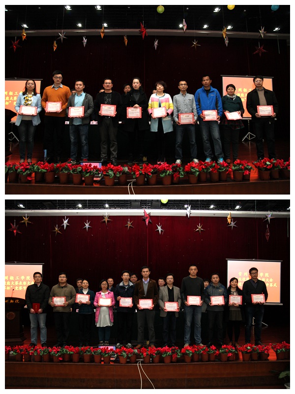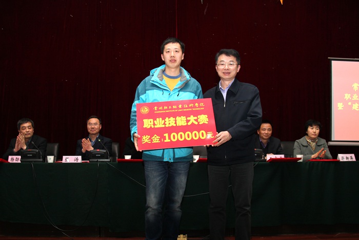 會議在莊嚴的國歌聲中開始。副院長楊勁松首先宣讀《關于2015職業技能大賽先進個人的表彰決定》。院長周大農特別為第二屆“江蘇技能狀元”獲得者周晶老師頒獎。獲獎學生代表12能源331班耿歡慶同學和優秀指導教師代表信息系王霞俊老師分別暢談了參賽的感想和大賽指導的經驗。