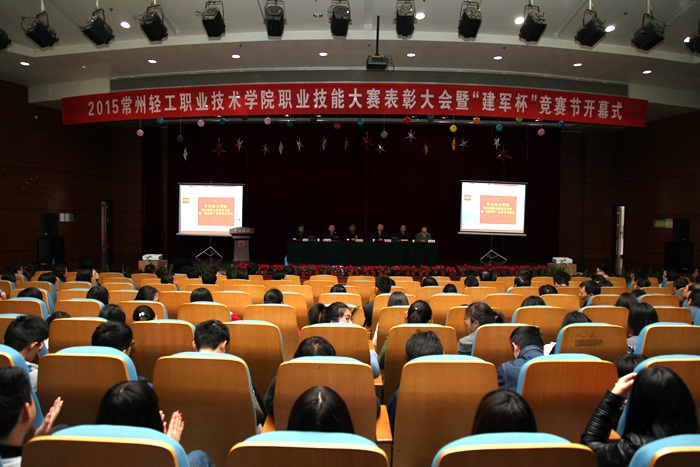 4月15日下午,我院2015職業技能大賽表彰大會暨“建軍杯”競賽節開幕式在圖文樓二樓報告廳隆重舉行。院領導楊興華、周大農、張濤、王志平、楊勁松、蔣新萍出席了表彰大會。會議由副書記張濤主持。各系部領導、相關職能部門負責人、獲獎學生及指導教師、“建軍杯”競賽項目負責人和學生近千人參加了會議。