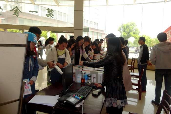 圖書館前期經過一個多月準備,先后帶領書香班級,讀者協會成員等去新華書店精心挑選了一千余冊圖書。活動現場,書刊閱覽室的四張方桌上分門別類地擺放著包括經管、教育、文學、藝術、醫學等類別藏書,可謂一應俱全。桌前引來眾多的讀者駐足,埋首書卷,認真閱讀。在借閱登記處,眾多學生排隊辦理。“圖書的借期是30天,可以續借1次。”館辦徐主任一邊介紹,一邊麻利地接過書掃描條碼。在館員們的推薦下,走過現場的多位老師停下匆匆的腳步挑起了圖書。《十宗罪》、《白巖松:行走在愛與恨之間》、《國人辯論的表情》等暢銷作品也瞬間成為讀者的至愛,整個中午,現場共借出圖書412冊。