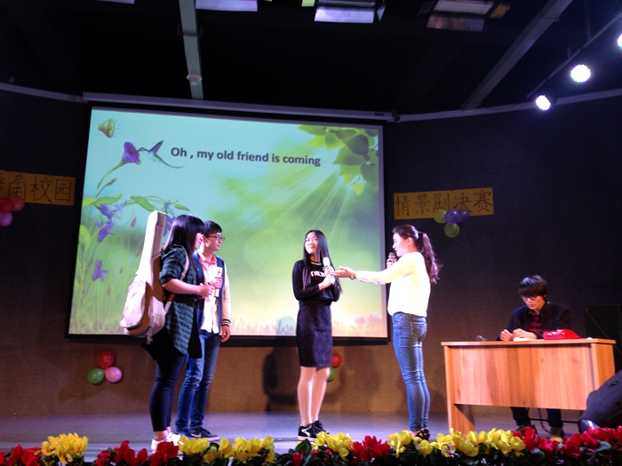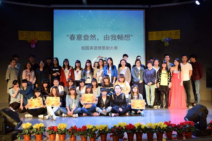 為了進一步調動學生學習英語的主觀能動性,營造濃厚的校園英語學習氛圍,以賽促學、以賽促技,提高同學們的交流和創作能力,經管系商務英語教研室聯合英語角、英語寫作社團等舉辦了2015年“建軍杯”“盎然春意,由我暢想”校園英語情景劇比賽。經過前期的充分準備,511日在文體中心藝術中心成功舉辦了此次大賽,英語教研室主任侯志燕、專業老師胡朝慧、吳小亞、龍慧、吳敏、王淑芳老師擔任評委。