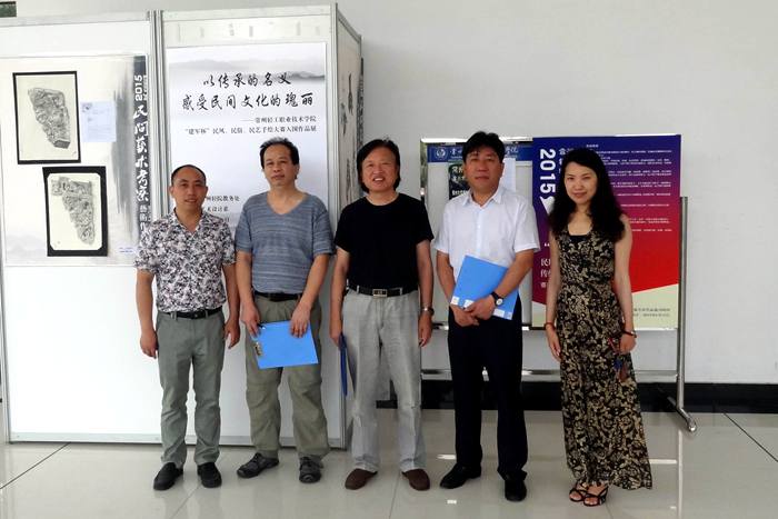 由左至右依次為:方四文,常州輕院藝術設計系主任;張新榮,常州工學院藝術與設計學院系主任;湯洪泉,江蘇理工學院藝術設計學院院長;李憲鋒,常州大學藝術學院院長;朱琴,常州輕院藝術設計系副主任