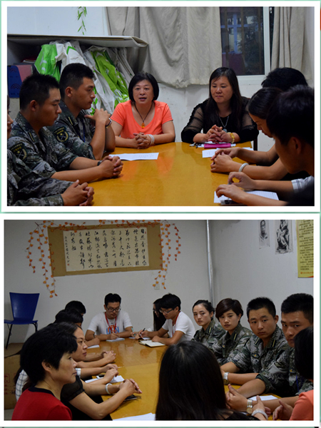 倪教官首先針對軍訓教學環節情況進行了反饋。“服從命令,團結戰友”是軍訓成效之一,在軍訓教學中參訓新生表現出的能吃苦、肯犧牲的精神為將來進行專業學習奠定了良好基礎。在磨練意志和強健體魄的同時,自立的內務整理規范作為軍訓質量考核的重要部分也納入軍訓教學考核內容。公寓宿管周阿姨針對宿舍情況反饋說:15級新生已經開始適應大學生活,正逐步養成嚴于律己的生活習慣。15級輔導員李艷和部分班級學生干部也通過晚自習、食堂就餐等調研的情況進行了廣泛的發言,王蘭萍副書記也就