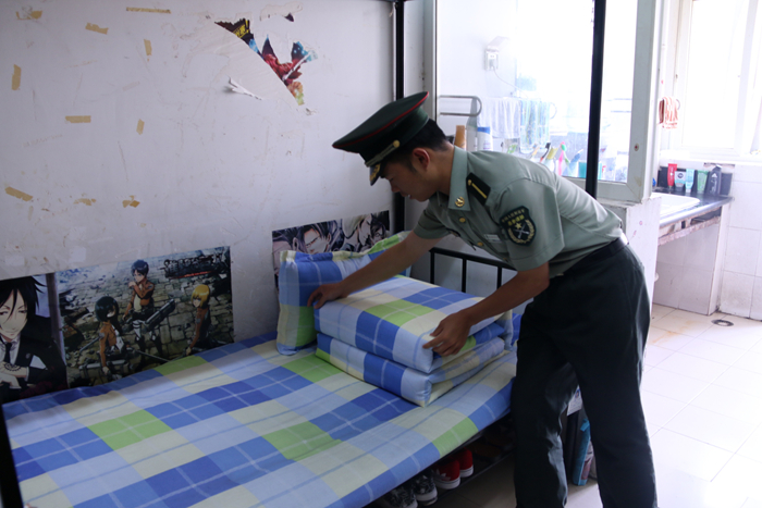 為了進一步加強機械工程系學生公寓的安全、衛生、文明建設,機械系從軍訓開始就強調要對新生宿舍強化管理,決定評選出一部分軍訓樣板宿舍,供全系學生參觀學習。經過8名教官的辛苦訓練和專業培訓,機械系新生宿舍面貌煥然一新。9月24日,由系黨總支書記蔣志強、輔導員陸成龍、陳蘆欽和系公寓自律委員會主要成員組成評比小組,對機械系全體新生88個宿舍進行了評選,最終評選出了11個“軍訓樣板宿舍”,并對這11個樣板宿舍進行了現場頒獎。