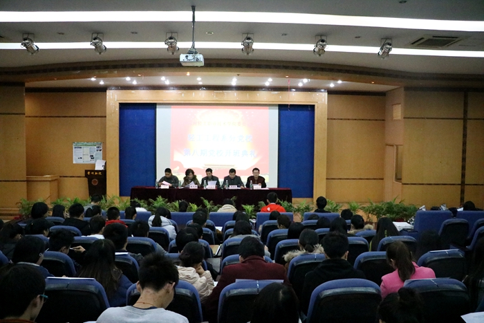 11月24日,常州輕工職業技術學院委員會黨校2015年度第八期(輕工工程系分黨校)培訓班開班儀式隆重舉行。組織部部長葉志平、輕工工程系黨總支書記分黨校校長費建明、輕工工程系黨總支副書記分黨校副校長嵇天培、院組織部陳曉敏以及輔導員出席了開班典禮。儀式由輕工工程系分團委書記分黨校副校長繆雙明主持。
