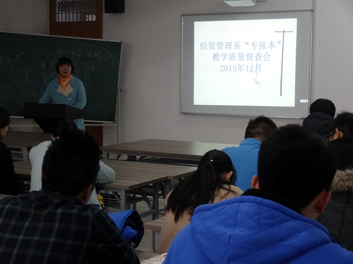 12月10日,經貿管理系楊海清主任召開2015級“專接本”首次教學質量督查會。相關班級的班主任和首輪考試學位課程未達70分的15級“專接本”班學生參加督查會。