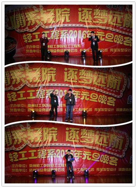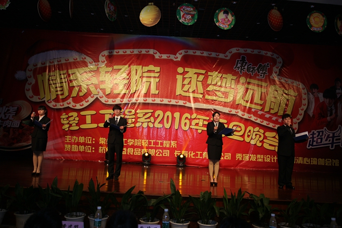 隨著冬至悄無聲息的到來, 2016年元旦離我們又近了一步。12月23日,在平安夜的前夕,由輕工工程系主辦,杭州頂益食品有限公司,長春化工有限公司,湖塘清心瑜伽會館贊助的“輕工工程系2016年元旦晚會”隆重舉行。系主任戴偉民、系黨總支書記費建明、院團委副書記季華、系副主任滕業方、系黨總支副書記嵇天培等領導和老師出席現場。