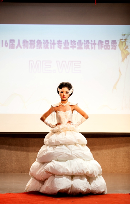 緊接著開幕式的專場時尚T臺秀是本次畢業設計作品展的第一站,通過模特動態的舞臺展示,將畢業設計作品完美呈現。近80款包含服飾、發型、妝容的作品,有傳統漢唐風格的創新、有波普藝術的再造、有古典主義的演繹、有京劇與時尚的對話………,模特的傾情演出更為現場增色不少。經評委打分,共有9名選手獲得一、二、三等獎及最佳創意、最佳服裝設計獎。
