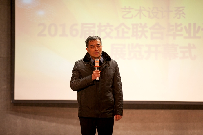 在畢業設計作品展開幕式環節,藝術設計系方四文主任介紹了將“校企合作、真實課題”這一主旨貫穿于始終的畢業設計改革思路與進程。楊副院長發表了重要講話,他肯定了藝術設計系畢業設計改革的探索精神,強調了畢業設計環節是對師生教學成果的一次檢閱,既鍛煉了學生的專業能力、創新能力,更體現出一種積極進取的精神,并期望師生們繼續努力,將創意和才識在人生的舞臺上盡情展現出來。開幕式在現場熱烈的掌聲中勝利開幕。