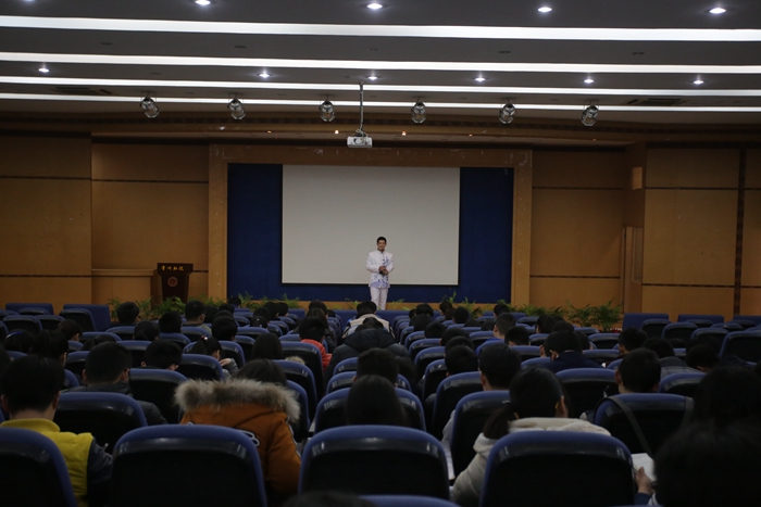 接著,校友劉洋以熱情洋溢的開場互動開始了第一課的授課。劉洋首先用切實經(jīng)歷,比如:怎樣用語言魅力請別人幫助你的演說模式、即興表達(dá)感謝的演說模式、面試時的演說模式等,他在現(xiàn)場做了生動的演示,為在座學(xué)員上了一堂生動的“社會生存課”。劉洋學(xué)長在講堂中,以一段《跪羊圖》,觸動了在座成員眼角的淚弦,勾起了對家鄉(xiāng)的思念,引起了大家內(nèi)心的共鳴。劉洋校友借此,進(jìn)一步提出要時刻牢記 “百善孝為先”為第一要素,記住“弟子,入則孝,出則弟,謹(jǐn)而信,泛愛眾,而親仁”的為人原則。現(xiàn)場互動更是激發(fā)了學(xué)生干部們的自信心,得到了全體學(xué)生干部熱烈的反響。