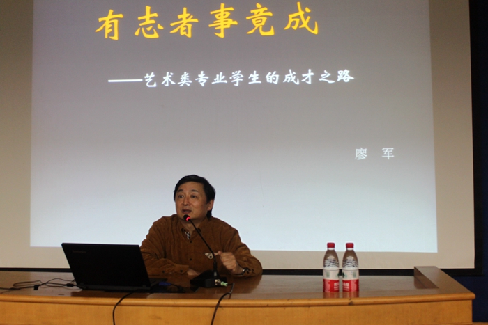 本次講座由藝術設計系主任方四文教授主持,廖軍教授以7個不同成才路徑的藝術類杰出人才的典型案例為主線,直抒達意地圍繞著勵志的主題,給在場的師生做了一次別開生面的正能量傳播,在一個半小時的講座中廣大同學都在靜心聆聽,聽眾們有如身歷其境般的沉醉于廖軍教授的春風話語之中,受到極大的啟示和鼓舞,大家對自身的前途有了重新的審視和規劃。講座最后,廖軍教授對于藝術學子提出了六點要求,作為同學們今后學習和生活的參照。