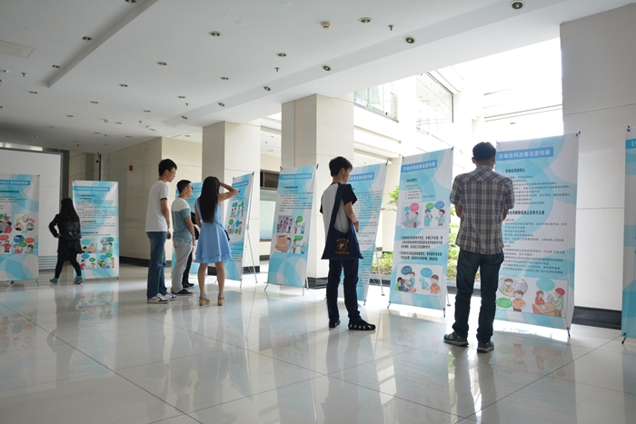 此次普法宣傳聯(lián)展受到同學(xué)們的一致歡迎,展覽圖文并茂,生動(dòng)形象,使更多的學(xué)生從勞動(dòng)合同的訂立、勞動(dòng)合同期限、非全日制用工、勞動(dòng)合同的解除、勞動(dòng)合同的終止和勞動(dòng)合同的無效等細(xì)節(jié)處,對《勞動(dòng)合同法》有了更深的了解,也為未來的就業(yè)維權(quán)奠定了基礎(chǔ)。