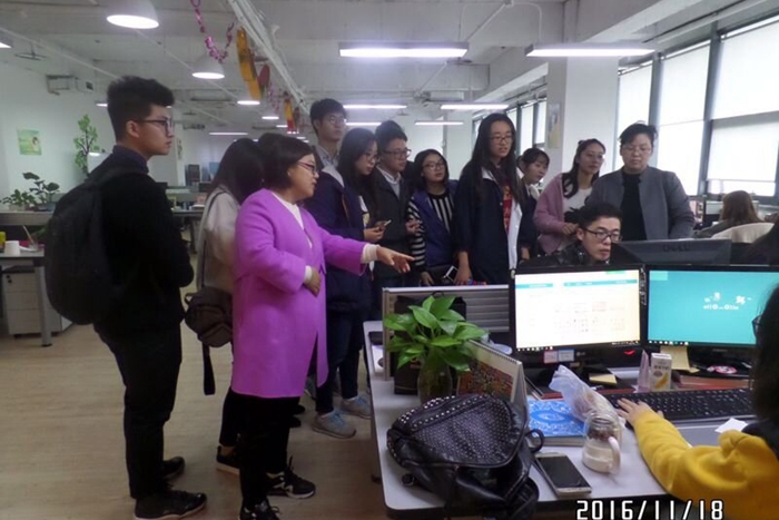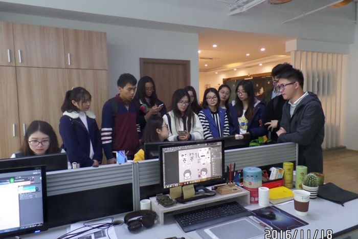 學生們受到公司的熱烈歡迎,隨后進行了參觀活動,在參觀過程中,同學們謙虛向公司人員們積極詢問問題,公司人員仔細全面地為同學們一一解答,詳細的介紹了手機主題從無到上傳到客戶端的整個流程并現場操作如何繪畫形象。
