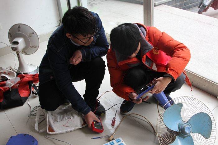 參加公益維修志愿服務的同學們在居委會和關工委王方大老師的安排下,熱情接待前來維修家電的社區群眾。在整個義務維修活動中,共維修多件電飯鍋、錄音機、收音機、電風扇等故障電器。志愿者們在指導老師的指導下,進行現場“會診”維修,并對癥“下藥”。居民們見自己的小家電又恢復了正常,臉上露出了喜悅的笑容,前來維修家電的群眾對同學們的志愿服務贊不絕口,同學們獲得了社會這個大課堂所帶來的不一樣的專業知識的鍛煉。