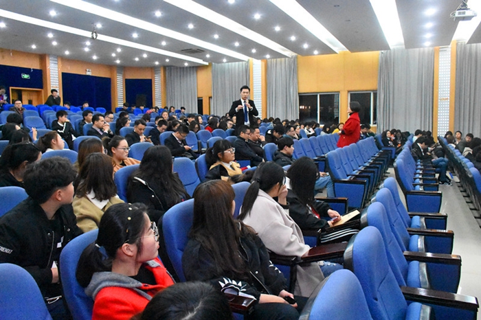 來自中原集團的優秀講師于希結合自身建筑設計的經驗為大家講解了房地產營銷技巧。他對房地產行業的現狀進行了深入分析,詳細講解了戶型的定義、設計原則、住宅的功能區間分配等問題以及如何針對不同的目標客戶進行有效營銷溝通的技能。在講解過程中,于總不時地與現場觀眾進行互動,詢問他們在實際工作中碰到的困惑,并針對問題進行一一解答,現場氣氛熱烈。針對營銷專業在校生,他希望每位學生能夠有自己的營銷規劃道路,要重視經驗的積累,通過參加各類營銷實踐活動不斷拓寬和提升自身能力。
