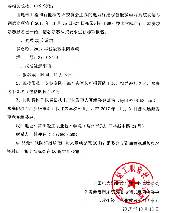 附件:關于2017年智能微電網系統安裝與調試賽項報名的通知