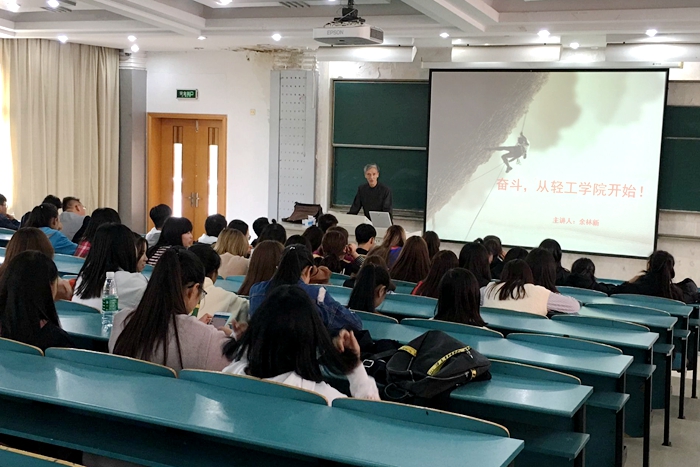 余林新以我院杰出校友,“大國(guó)工匠”鄧建軍的事跡引入,以自己豐富的人生閱歷,旁征博引,引導(dǎo)廣大青年學(xué)生將輕工學(xué)院作為自己新的起點(diǎn),明確方向,樹立目標(biāo),保持永恒的原動(dòng)力;豐富學(xué)養(yǎng),增長(zhǎng)才干,保持非凡的競(jìng)爭(zhēng)力;排除干擾,克服浮躁,保持堅(jiān)強(qiáng)的意志力。他希望,同學(xué)們能靜下心來,學(xué)會(huì)學(xué)習(xí),專心學(xué)習(xí),為國(guó)家的富強(qiáng)繁榮、民族的振興貢獻(xiàn)自己的力量。