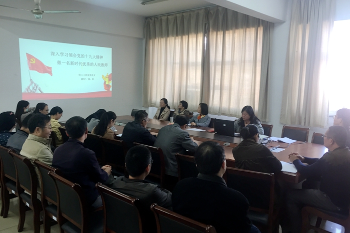 為學(xué)習(xí)宣傳貫徹十九大精神,根據(jù)學(xué)院部署,11月1日中午,輕工工程系黨總支組織全系教師集中學(xué)習(xí)黨的十九大報(bào)告內(nèi)容并領(lǐng)會(huì)會(huì)議精神。