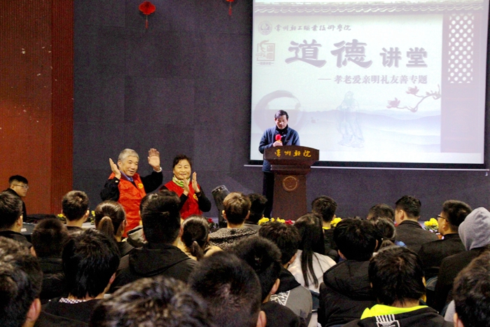 11月29日下午,模具系黨總支在學院藝術中心小劇場舉辦了志愿精神專題道德講堂。全國最美家庭張源新、張玉華夫婦應邀到場開講。模具系黨總支書記羅廣思及關工委部分老師、學院各系團委學生會干部、余美芳工作室馨緣種子社全體社員等到會參加。大講堂由余美芳主持。