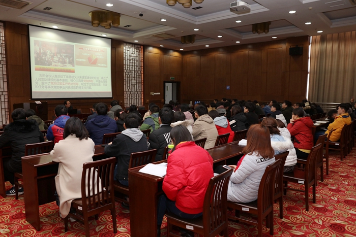 12 月22日下午,根據(jù)校黨委的統(tǒng)一部署,學校舉辦學習貫徹黨的十九大精神宣講會。宣講會由黨委宣傳部長張燏主持,校學習“十九大精神”宣講團成員、馬克思主義學院教師張永林主講。學校全體學生黨員、各黨支部書記近百名師生參加。