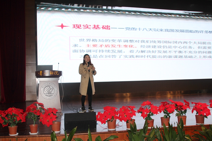 ?報告最后對青年教師和學生也提出了呼吁,青年一代應擔負起歷史使命,用堅定的信念照亮人生路,用正確的價值觀培育新風尚,以中國夢激揚青春夢,努力成為“有理想、有本領、有擔當”的優秀青年。