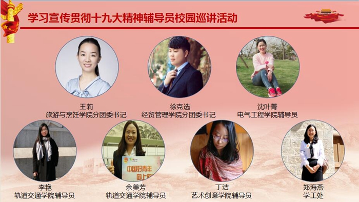 據(jù)悉后期學院還將組織“學習宣傳貫徹黨的十九大精神,優(yōu)秀輔導員‘校園巡講’進班級活動”。