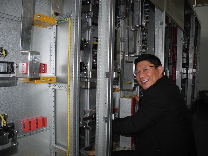 “當(dāng)年老師教我專(zhuān)業(yè)知識(shí),今天我向老師匯報(bào)專(zhuān)業(yè)成就”——王禮偉向母校的任課老師和班主任介紹他的電柜產(chǎn)品