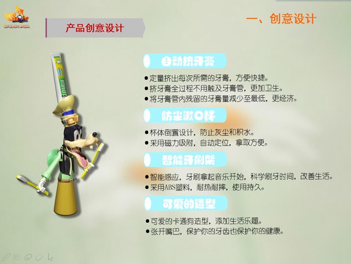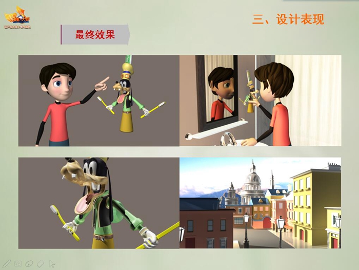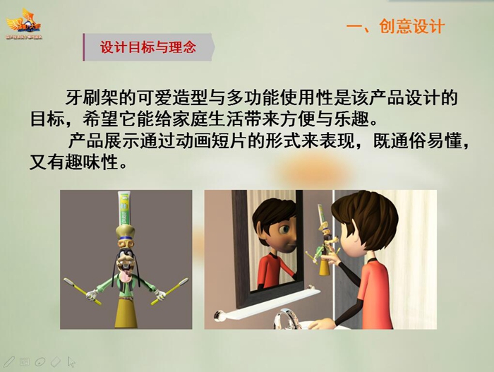 我院藝術(shù)設(shè)計(jì)系“漫人堂—葫蘆娃來戰(zhàn)小哪吒團(tuán)隊(duì)”選手葛凱、董旭然的獲獎(jiǎng)作品“多功能牙刷架產(chǎn)品設(shè)計(jì)制作與動(dòng)畫展示”,是在王棟臣、韓明老師的精心指導(dǎo)下,歷時(shí)9個(gè)月,利用課余時(shí)間進(jìn)行市場(chǎng)調(diào)研、設(shè)計(jì)草圖、設(shè)計(jì)方案,制作三維模型、文字臺(tái)本、角色、場(chǎng)景設(shè)計(jì)、分鏡頭繪制、三維動(dòng)畫制作等各環(huán)節(jié)的有序推進(jìn),以江蘇賽區(qū)特等獎(jiǎng)的好成績(jī)進(jìn)入本次全國總決賽。決賽現(xiàn)場(chǎng),我院是江蘇省參賽院校在數(shù)字表現(xiàn)方向的唯一勝出者,選手作品與現(xiàn)場(chǎng)表現(xiàn)高度吻合本屆大賽“互聯(lián)網(wǎng)+中國制造2025—眾創(chuàng)、眾包、眾扶、眾籌”的主題,充分展現(xiàn)出我院第二課堂的建設(shè)成果、學(xué)生跨專業(yè)學(xué)習(xí)能力及創(chuàng)新、創(chuàng)造能力,受到了評(píng)委專家與大眾的高度贊譽(yù)。