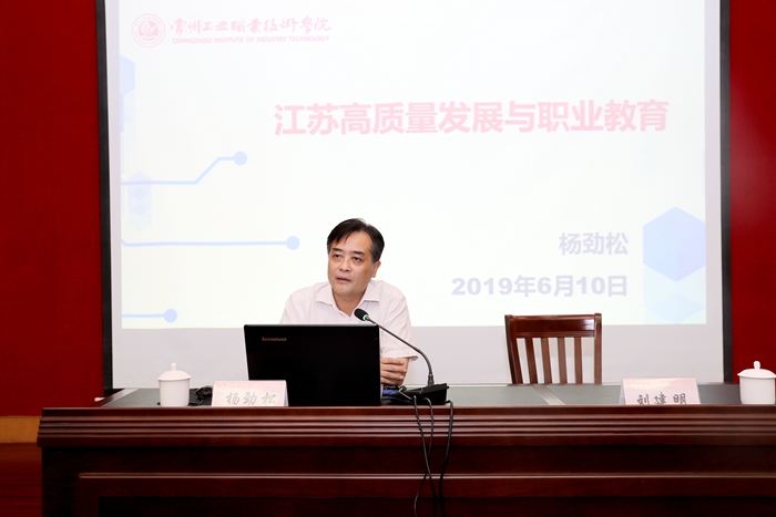 為貫徹落實(shí)習(xí)近平新時(shí)代中國(guó)特色社會(huì)主義思想和黨的十九大精神,堅(jiān)持教育優(yōu)先發(fā)展,辦好人民滿意的高職教育,6月10日,校長(zhǎng)楊勁松為大學(xué)生作了題為“江蘇經(jīng)濟(jì)高質(zhì)量發(fā)展與職業(yè)技術(shù)教育”的報(bào)告。此次講座也是校領(lǐng)導(dǎo)深入大學(xué)生宣講黨的十九大精神系列講座第二講。